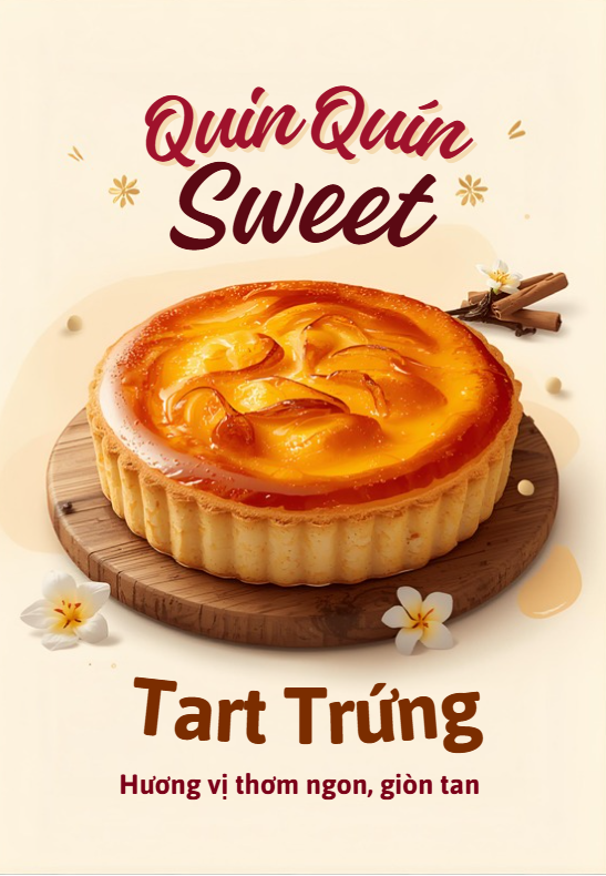 Bánh tart trứng là món bánh ngọt được nhiều khách hàng yêu thích tại Quin Quin Sweet. Bánh nổi bật với lớp vỏ giòn nhẹ kết hợp cùng phần nhân trứng sữa mềm mịn. Nhờ sự kết hợp hài hòa này, bánh mang đến hương vị tinh tế, dễ ăn và rất hấp dẫn.
