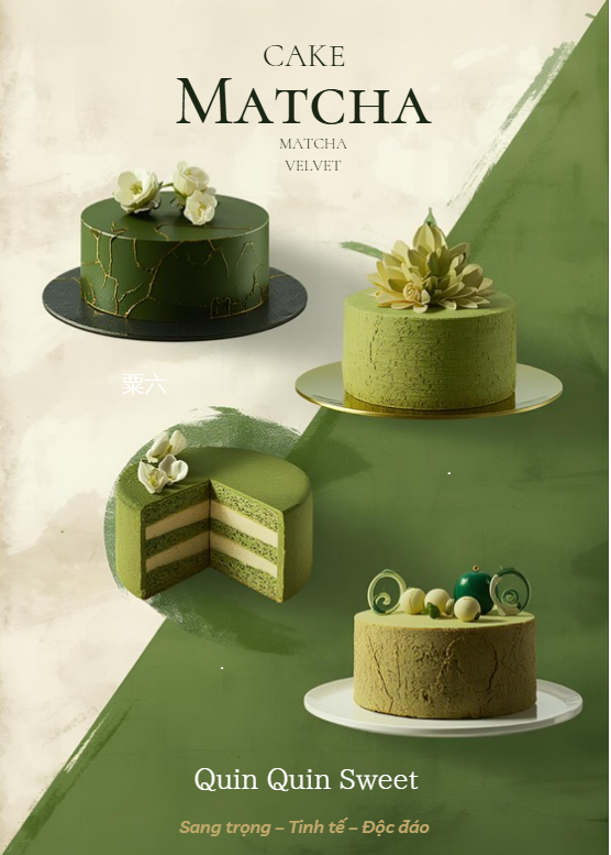 Matcha Cake Collection tại Quin Quin Sweet là sự kết hợp giữa vẻ đẹp hiện đại và hương vị trà xanh thanh dịu. Mỗi mẫu bánh mang một phong cách riêng, nhưng đều giữ được tinh thần sang trọng, tinh tế và dễ thưởng thức.